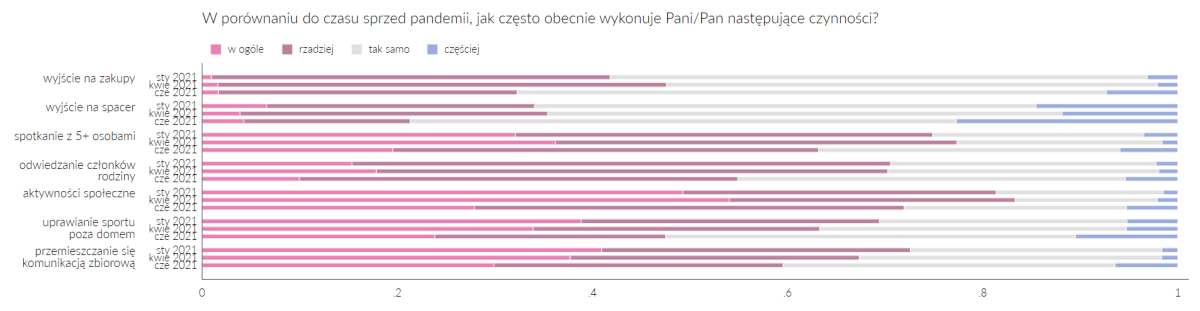 W czerwcu, w porównaniu do stycznia i kwietnia tego roku, wzrósł odsetek osób, które podejmowały aktywność poza domem tak samo często jak przed pandemią.