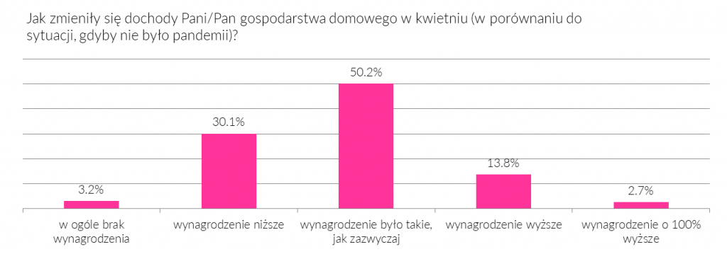 Wśród rodzin, w których wszyscy nadal mają pracę, ponad 1/3 deklaruje znaczący spadek dochodów.